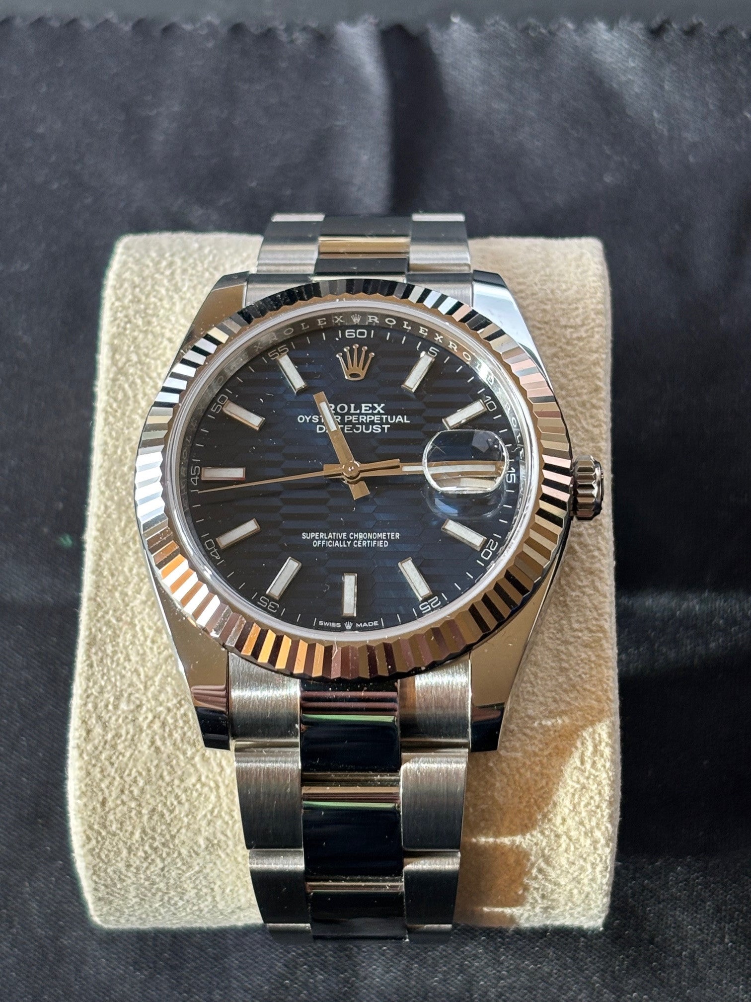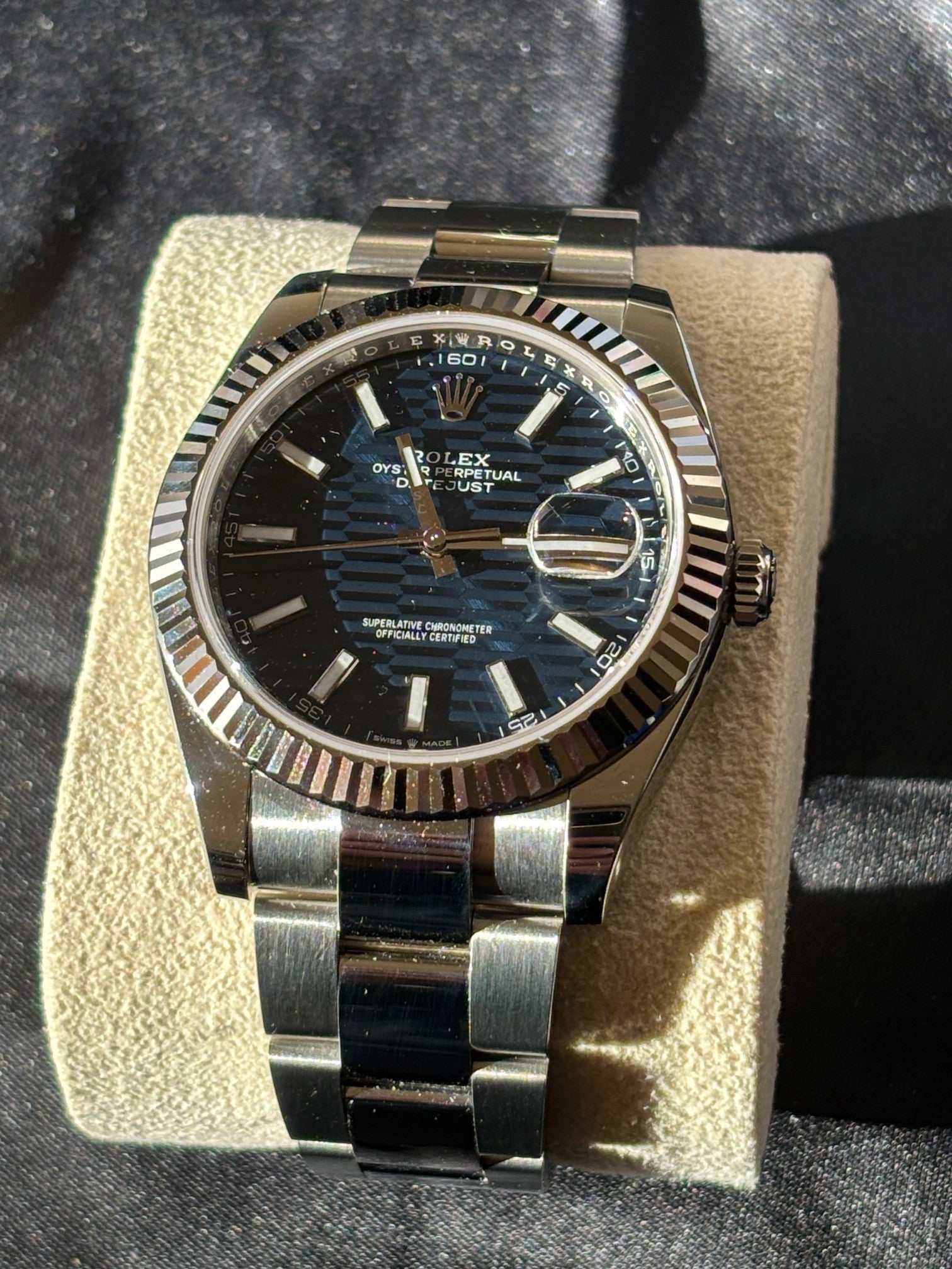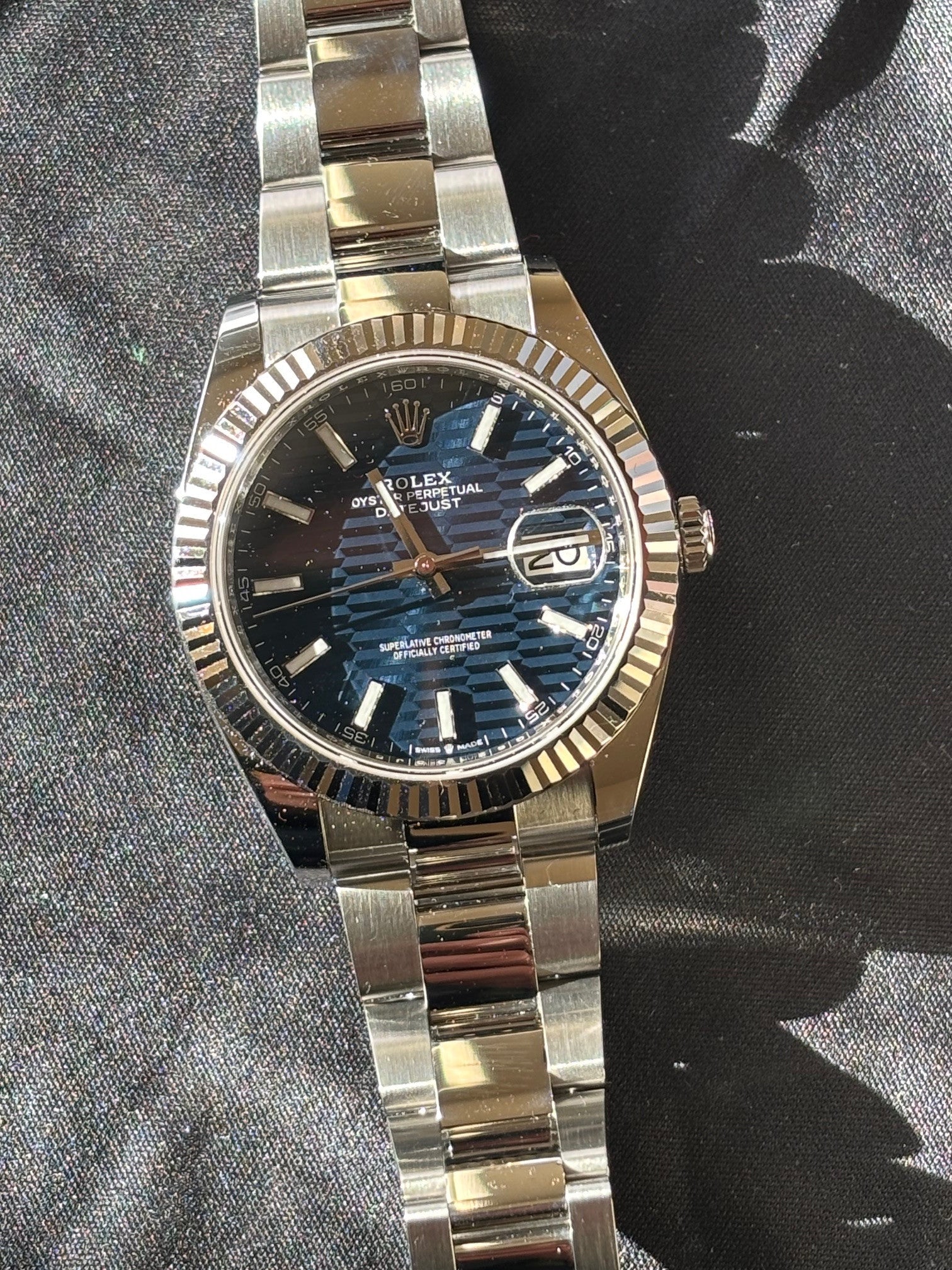 Rolex Datejust 41 126334 – Blue Motif Dial, White Gold Fluted Bezel, Jubilee Bracelet