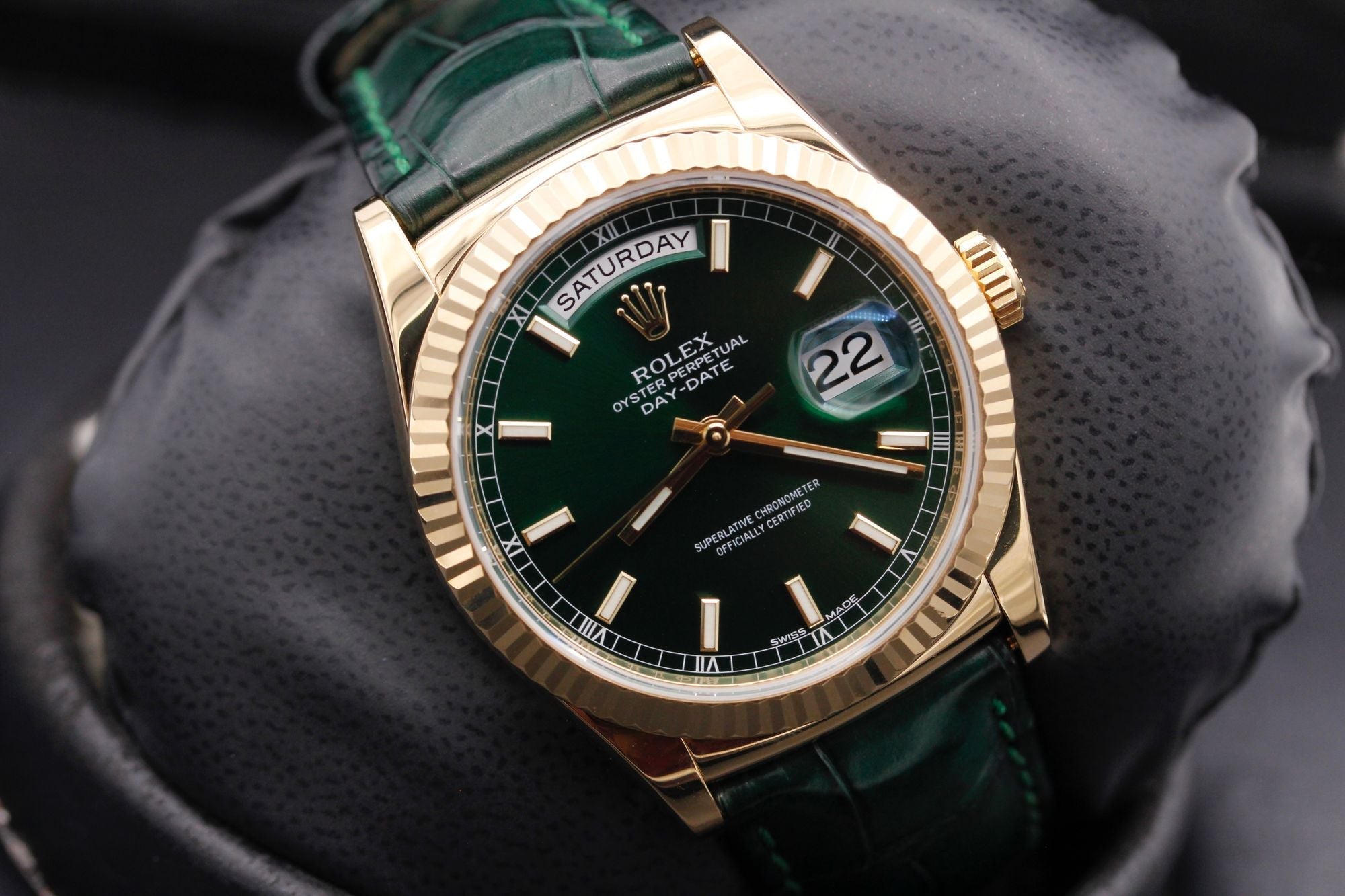 Rolex Day-Date 36 – 118138 – Green Dial, Yellow Gold, 36mm – Mint Condition